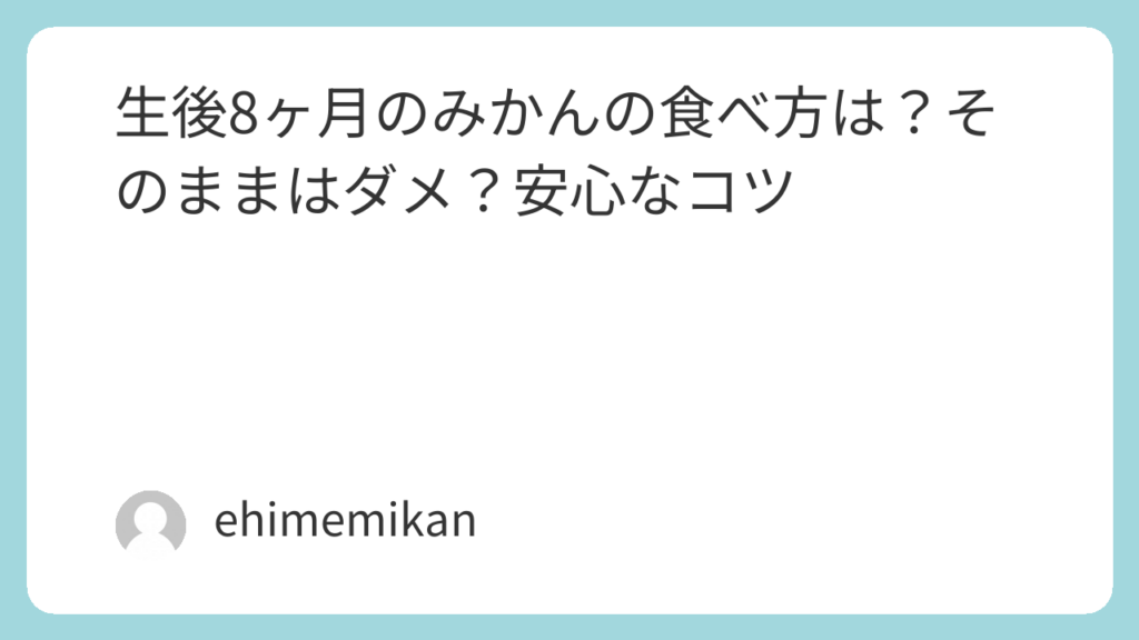 こんにちは!愛媛の太陽をたっぷり浴びて育ったみかんに囲まれて育ち、今でも毎日みかんの香りに癒やされている「あきら」です。離乳食もいよいよ中期、モグモグ期真っ盛りの生後8ヶ月になると、赤ちゃんの食べられる食材も増えてきて、食卓がどんどん賑や... -