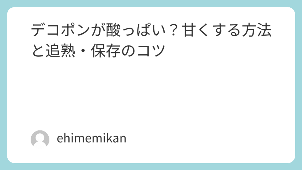 こんにちは!愛媛のみかん畑に囲まれて育った、愛媛みかんの部屋の管理人「あきら」です。冬から春にかけての楽しみといえば、なんといってもあのポコッとした頭が可愛いデコポンですよね。でも、期待に胸を膨らませて剥いた一口目が「うわっ、酸っぱい!... -